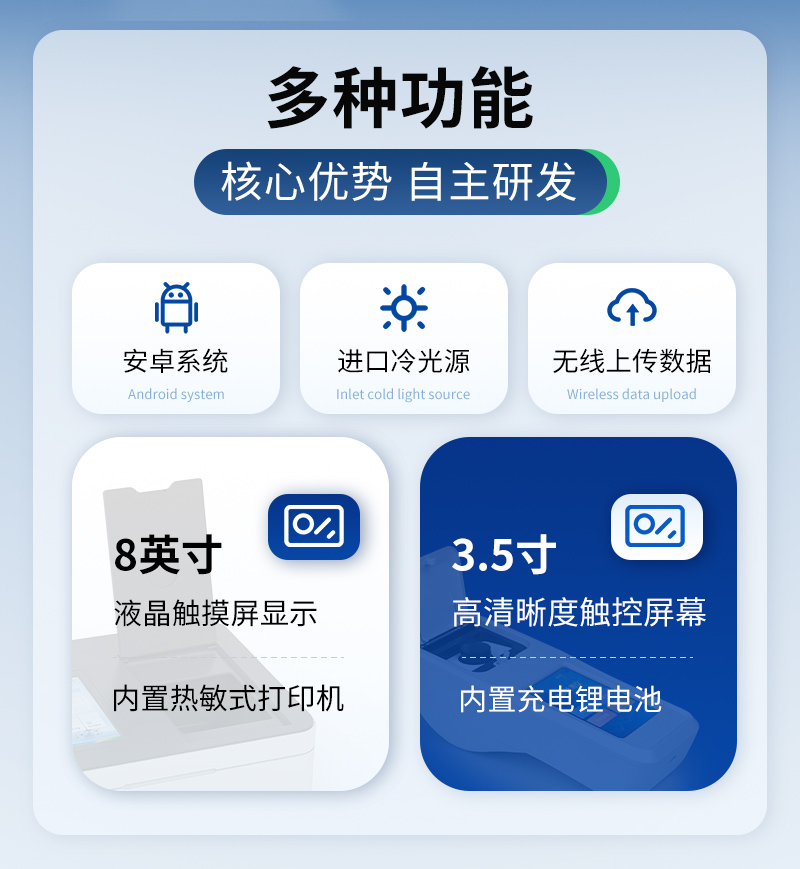 4. 5英寸大屏幕液晶屏幕,全中文顯示,數(shù)據(jù)直讀,操作簡單省時(shí)。