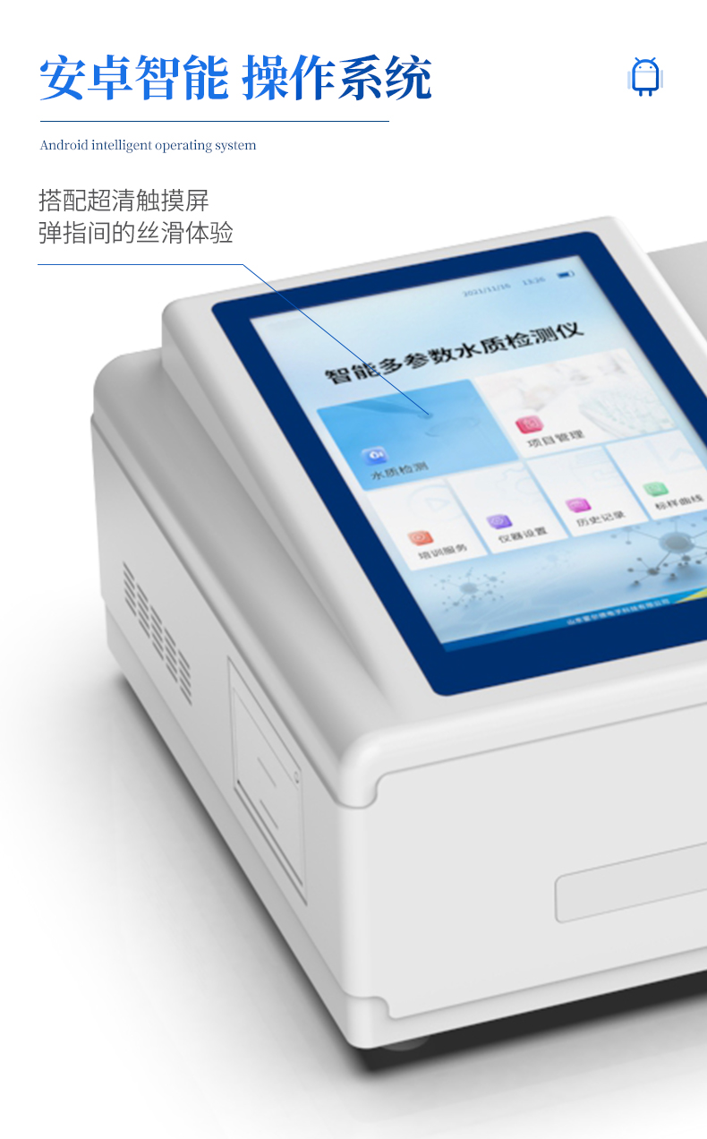 主要檢測COD 、氨氮、總磷、總氮等指標,兼具智能數(shù)據(jù)分析功能,圖表、列表顯示數(shù)據(jù),分析一目了然;高清晰度彩色液晶觸摸顯示屏,Android 智能操作系統(tǒng),中文顯示界面,中英文鍵盤,人性化操作,使用更簡單。