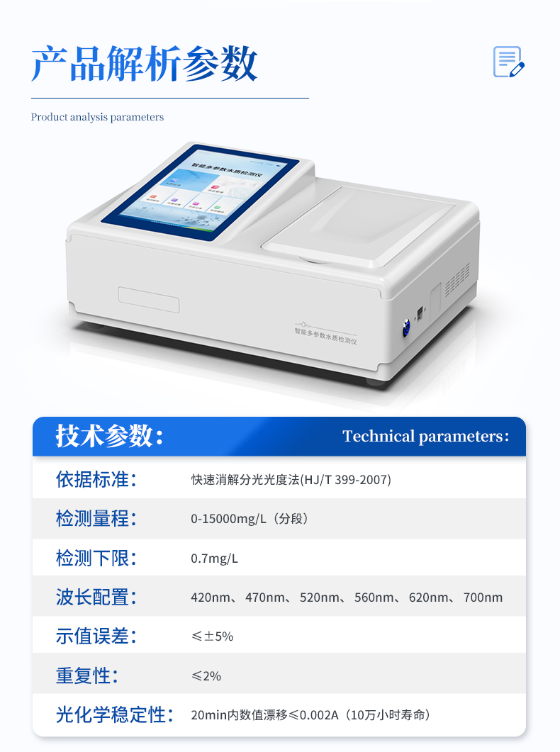水質cod氨氮總磷總氮檢測儀技術參數(shù):