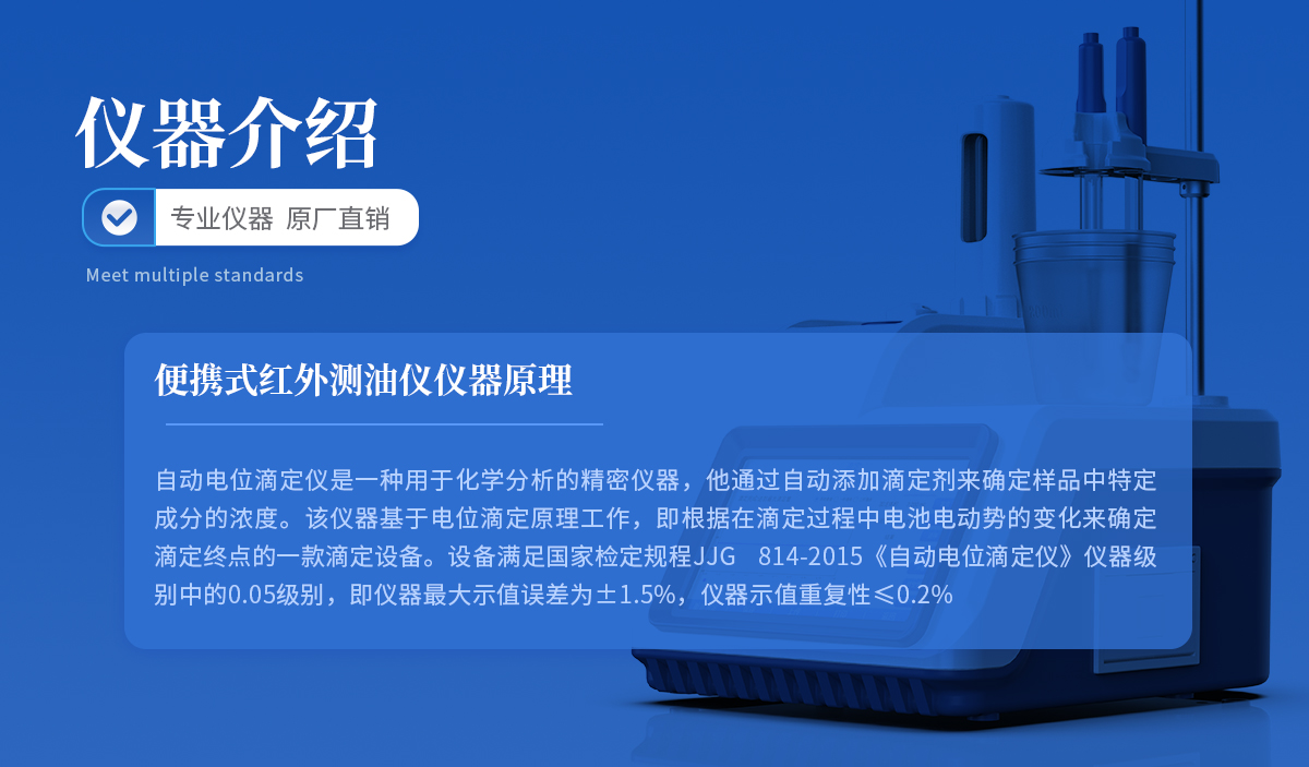 簡介:產(chǎn)品簡介:自動電位滴定儀是一種用于化學(xué)分析的精密儀器,他通過自動添加滴定劑來確定樣品中特定成分的濃度。該儀器基于電位滴定原理工作,即根據(jù)在滴定過程中電池電動勢的變化來確定滴定終點的一款滴定設(shè)備。設(shè)備滿足國家檢定規(guī)程JJG 814-2015《自動電位滴定儀》儀器級別中的0.05級別,即儀器**示值誤差為±1.5%,儀器示值