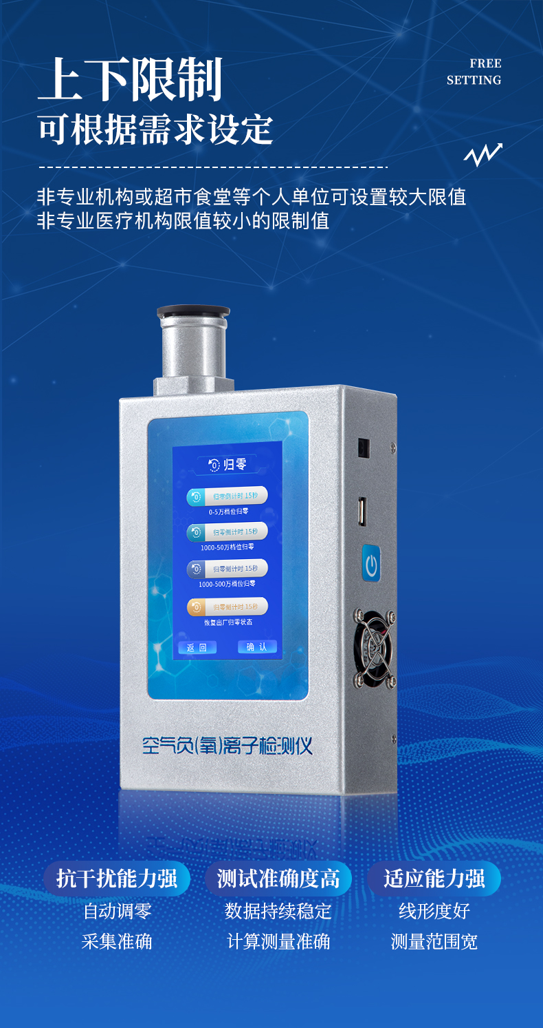 實時測量空氣中的大氣負(fù)氧離子濃度、甲醛濃度,是環(huán)境監(jiān)測、納米涂料、負(fù)離子保健產(chǎn)品、負(fù)離子家裝建材、室內(nèi)檢測、空氣治理、空氣凈化器及其制品負(fù)離子濃度的測量與演示的優(yōu)選工具。