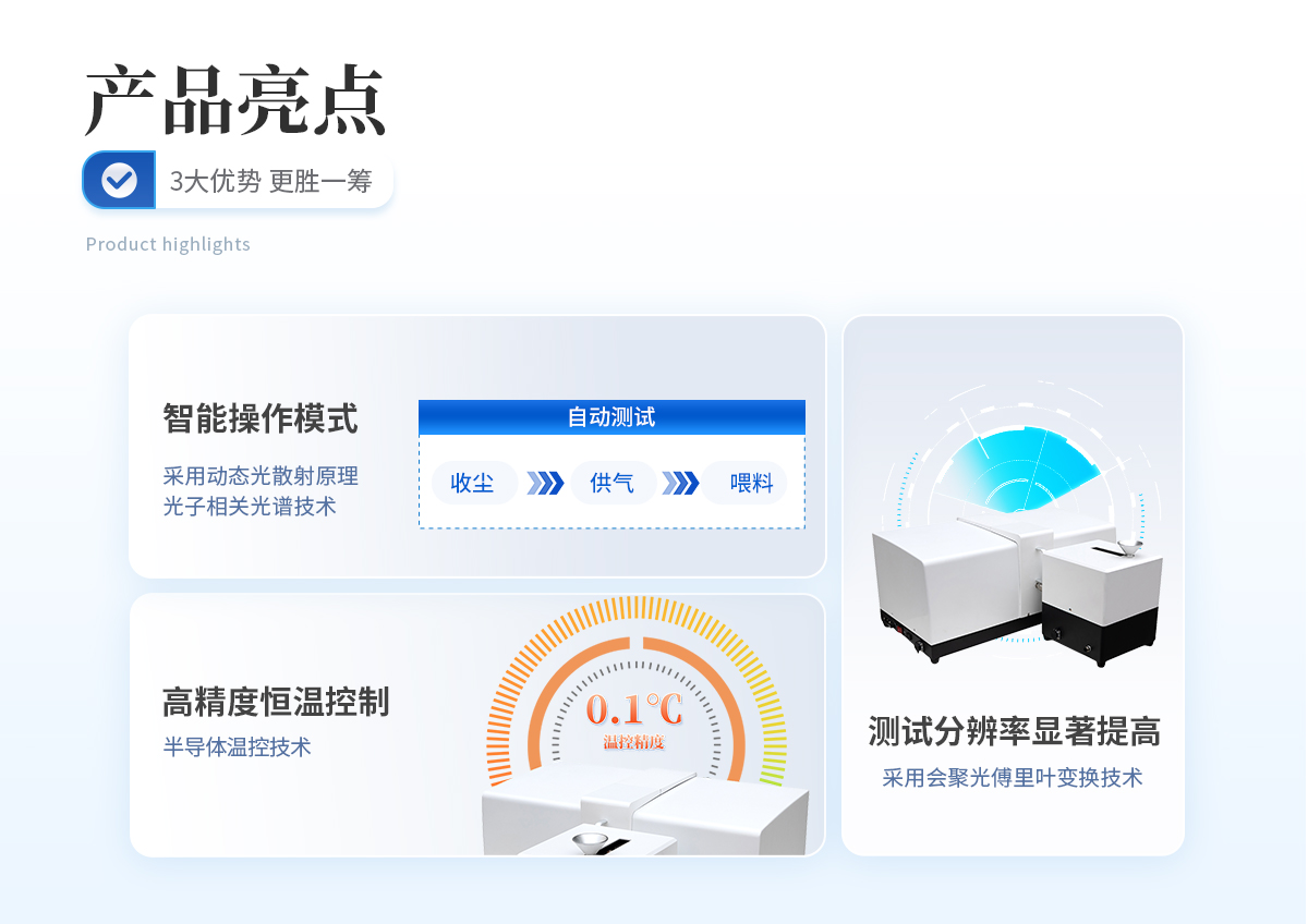 | 光路設(shè)計(jì) 采用會聚光傅立葉變換技術(shù),使散射光不受透鏡孔徑限制;采用雙譜面光路設(shè)計(jì),有效擴(kuò)大測量范圍至2000微米;獨(dú)創(chuàng)雙激光正交光路使用半導(dǎo)體輔助激光器測量側(cè)向散射0.0155度至164度,將測量范圍進(jìn)一步擴(kuò)展。 | 量程擴(kuò)大 測試范圍下限顯著擴(kuò)大到0.01um,特別適合樣品顆粒度小的用戶,對亞微米顆粒的測試效果達(dá)到**水準(zhǔn)。 | 全內(nèi)置分散系統(tǒng) 將超聲分散、機(jī)械攪拌、循環(huán)通道合理的集成于儀器內(nèi)部,保證顆粒測試過程中的均勻分散和分布,有效地避免了外置分散系統(tǒng)因管路長而導(dǎo)致的顆粒分布不均勻、大顆粒沉積等現(xiàn)象,保證了測試結(jié)果的準(zhǔn)確性。 | 智能操作模式 具有智能化全自動操作模式,實(shí)現(xiàn)一鍵測試,即只要根據(jù)提示加入樣品,點(diǎn)擊“自動測試”,所有操作過程包括進(jìn)水、分散、循環(huán)、測試、清洗、數(shù)據(jù)記錄、數(shù)據(jù)分析、保存及打印等全部自動完成,不僅減輕了測試人員的工作量,而且消除了人為因素的干擾誤差,進(jìn)一步提高了測試的精度和結(jié)果的真實(shí)性。 | 全自動對中系統(tǒng) 采用精密四項(xiàng)混合式步進(jìn)電機(jī)組成光路自動對中系統(tǒng),微動精度達(dá)到0.1um,使儀器光路始終處于**狀態(tài),在消除手動對中光路所帶來的麻煩和困難的同時(shí)也提升了測試結(jié)果的準(zhǔn)確性和穩(wěn)定性。 | 權(quán)威的校準(zhǔn)方式 在整個(gè)測試范圍內(nèi)采用國家粒度標(biāo)準(zhǔn)物質(zhì)連續(xù)進(jìn)行校準(zhǔn),只需一年標(biāo)定一次儀器就可以。校準(zhǔn)方式簡單快捷。 | 無約束自由擬合技術(shù) 無約束自由擬合技術(shù),粒度分析不受任何函數(shù)限制,可真實(shí)的反映顆粒的分布狀態(tài) |