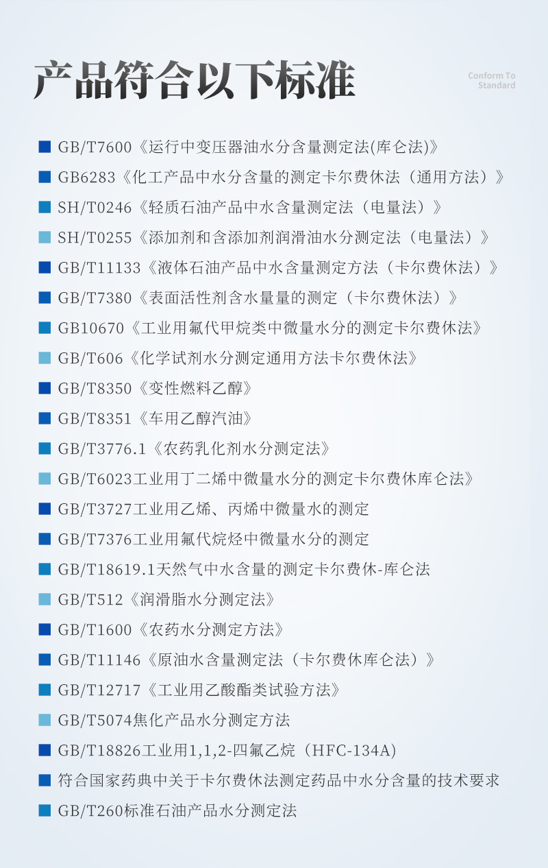 5、GB/T11133《液體石油產(chǎn)品中水含量測定方法(卡爾費(fèi)休法)》