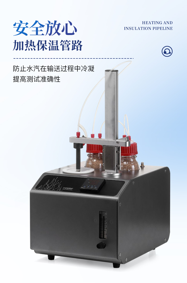 | 1、10ml樣品瓶:使用四氟與硅膠復(fù)合墊片,高溫條件下不會釋放可能產(chǎn)生副反應(yīng)的物質(zhì) | 2、雙干燥瓶設(shè)計(jì),有效降低氣源中的水分干擾 | 3、加熱保溫管路,防止水汽在輸送過程中冷凝,提高測試準(zhǔn)確性 |