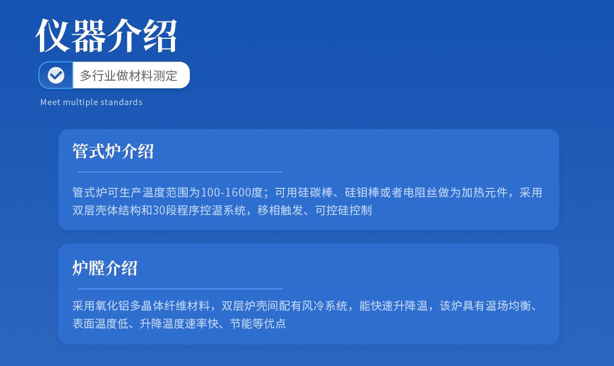 1、爐膛采用優(yōu)質(zhì)氧化鋁纖維材料,保溫性能好,耐用,拉伸強度高,無雜球,純度高,節(jié)能效果明顯;2、加熱元件采用優(yōu)質(zhì)HRE電阻絲,大大提高了其使用壽命;3、超溫報警,漏電保護,操作安全可靠。