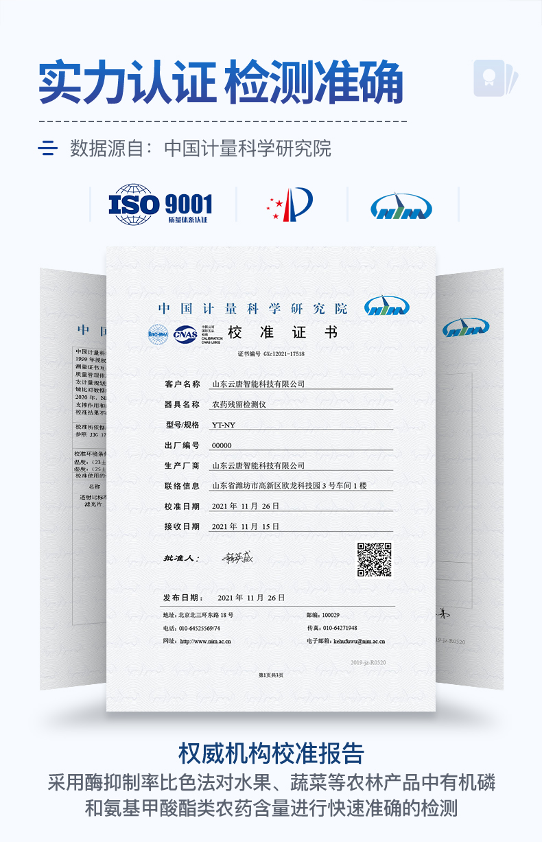 檢測標準:依據(jù)國家標準方法(GB/T5009.199-2003)以及世界衛(wèi)生組織WHO、世界糧農(nóng)組織FAO殘留農(nóng)藥檢測標準、世界環(huán)境保護局EPA參照攝入量等要求來設(shè)計。采用酶抑制率比色法對水果、蔬菜等農(nóng)林產(chǎn)品中有機磷和氨基甲酸酯類農(nóng)藥含量進行快速準確的檢測,乙酰膽堿酯酶和丁酰膽堿酯酶試劑均可以使用,符合國家標準和農(nóng)業(yè)部標準的要求。