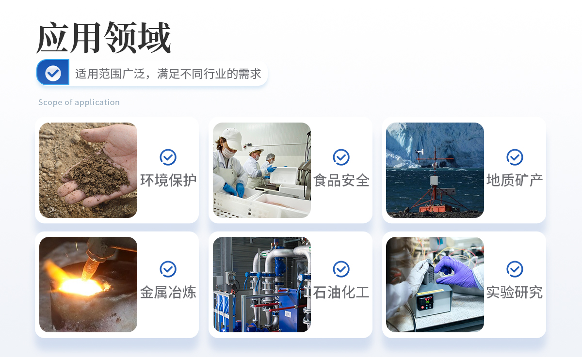 原子熒光光譜儀的應(yīng)用領(lǐng)域較為廣泛,主要測(cè)試樣品中 11 種超痕量元素的含量,**檢測(cè)下限可達(dá)千億分之一級(jí)。應(yīng)用領(lǐng)域包括水質(zhì)、土壤、大氣等樣環(huán)境檢測(cè)項(xiàng)目、食品檢驗(yàn)、檢驗(yàn)檢疫、藥品檢驗(yàn)、化妝品檢驗(yàn)、土壤飼料肥料檢驗(yàn)、地質(zhì)礦產(chǎn)測(cè)試、冶金樣品檢驗(yàn)、教學(xué)研究等。