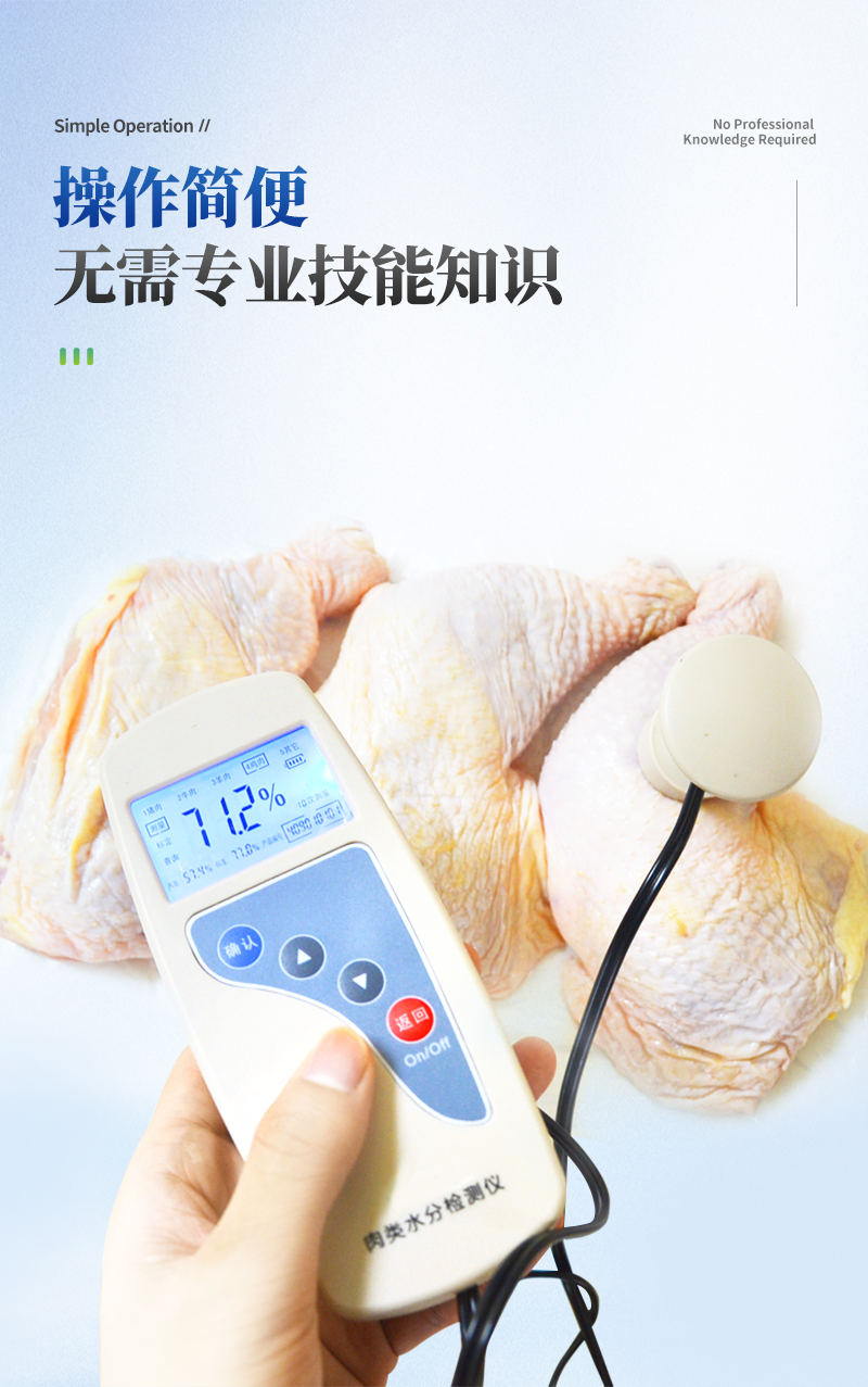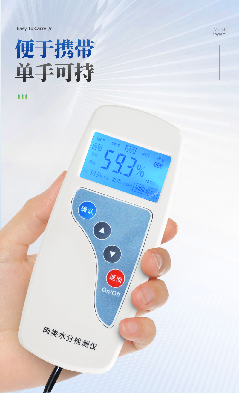 肉類水分檢測儀主要用于快速豬肉、牛肉、雞肉等動(dòng)物肉類水分含量,從而判斷所測樣品是否為注水肉,該儀器設(shè)計(jì)精巧,單手可持,儀器可根據(jù)測定對象的品種,設(shè)定相應(yīng)的判斷標(biāo)準(zhǔn)值。