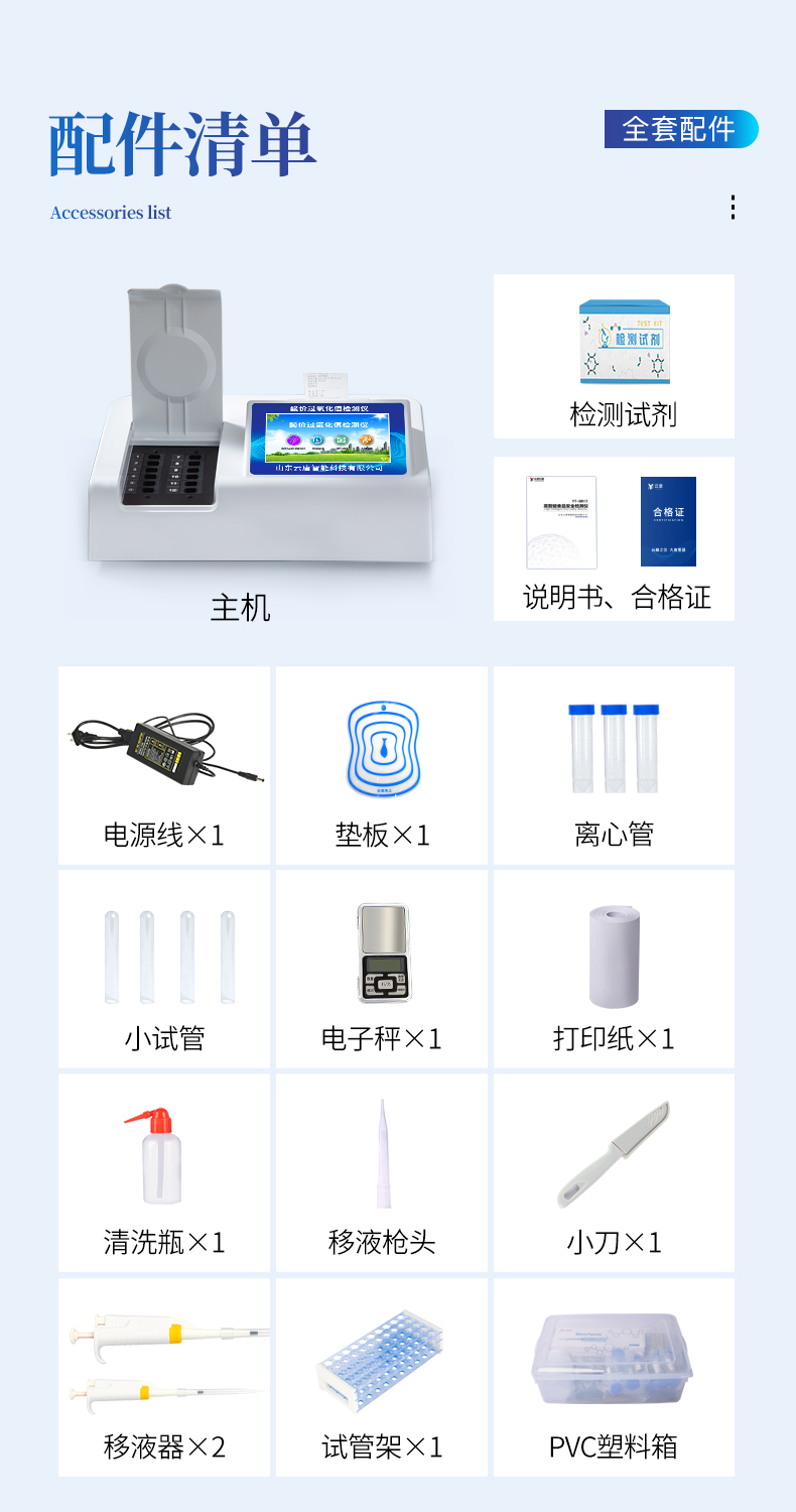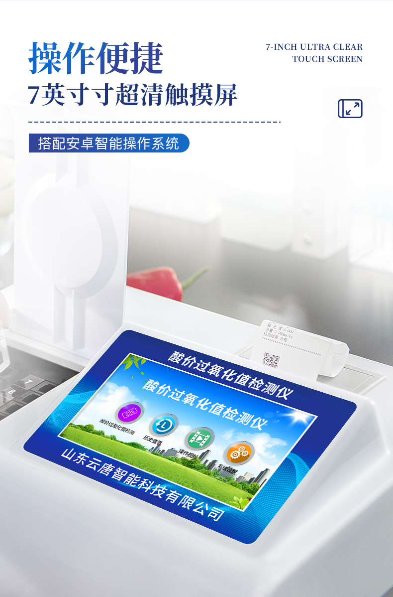 | 安卓智能操作系統(tǒng),采用更加**和人性化操作,儀器具有網(wǎng)線連接、wifi聯(lián)網(wǎng)上傳、GPRS無線遠傳功能,快速上傳數(shù)據(jù)。 | 一體化便攜式快檢設(shè)備,滿足現(xiàn)場及流動檢測使用需求,能夠在同一軟件下實現(xiàn)所有檢測項目的檢測,并可通過同一窗口直觀顯示檢測結(jié)果。 | 智能化程度高,儀器具有自檢功能:具有開機自檢和調(diào)零功能,具有自動檢測重復(fù)性功能。 | 檢測通道:≥12個檢測通道,可以同時測試多個樣品,每個樣品由程序控制分別獨立工作,不會互相干擾。 | 配備新一代嵌入式熱敏打印機,可選擇手動打印或者自動打印,檢測完成可自動打印檢測報告和二維碼。 | 光源采用進口超高亮發(fā)光二極管,高精度、穩(wěn)定性強、光源可控、可以關(guān)掉不使用的光源,功耗更低。 | 采用標(biāo)準(zhǔn)USB2.0接口設(shè)計,支持U盤存儲,免驅(qū)動安裝,方便數(shù)據(jù)的存貯和移動,并可隨時與計算機直接相連,并且可用計算機控制儀器。實現(xiàn)數(shù)據(jù)查詢、瀏覽、分析、統(tǒng)計、打印等。 | 儀器帶有監(jiān)管平臺。數(shù)據(jù)可局域網(wǎng)和互聯(lián)網(wǎng)數(shù)據(jù)上傳,檢測結(jié)果可直接無線上傳。進行數(shù)據(jù)分析處理,檢測油品等食品安全長短期動態(tài),達到問題預(yù)估、預(yù)警。 | 儀器具有品類多種類樣品菜單庫,可靈活選擇檢測樣品,不同的檢測通道可同時檢測不同的樣品項目。 | 樣品處理簡單省力,整體操作快速、安全、便捷。 | 儀器具有自身保護功能,可設(shè)置用戶名及密碼,防止非工作人員操作等。 | 高靈敏度,高檢測精度,高重復(fù)性精度,掃描式高精度光學(xué)傳感器。 | 內(nèi)置強大的數(shù)據(jù)庫,可在儀器上直接選擇樣品名稱、檢測指標(biāo)、送檢單位等信息,也可在儀器上直接編輯錄入樣品名稱、檢測指標(biāo)、送檢單位等信息并保存進樣品數(shù)據(jù)庫。 | 儀器具有重新校準(zhǔn)、鎖定、恢復(fù)出廠設(shè)置功能。 | 結(jié)果判定線可修改,對照值標(biāo)定值可保存,斷電不丟失數(shù)據(jù)。 |