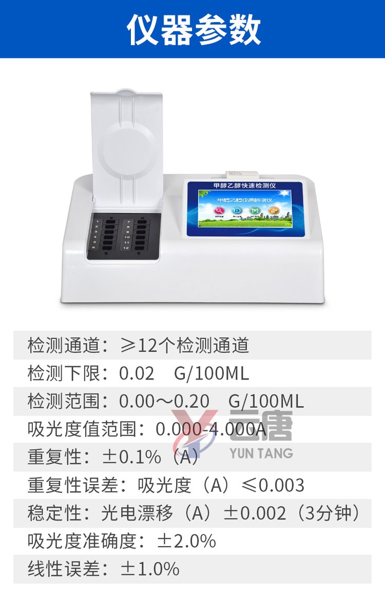 簡介:「山東云唐」食品甲醇檢測儀廠家制造經(jīng)驗豐富,生產(chǎn)研發(fā)的食品甲醇檢測儀檢測速度快,檢測結(jié)果準確,價格優(yōu)惠,質(zhì)量保障,歡迎新老客戶來電詳談!