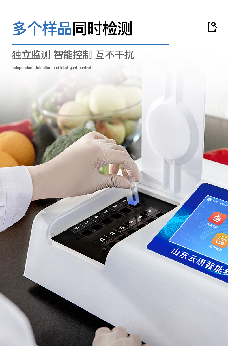 可快速檢測(cè)各類食品中的亞硝酸鹽、二氧化硫、甲醛、吊白塊、雙氧水、硼砂、農(nóng)藥殘留、乳及乳制品中蛋白質(zhì)、硝酸鹽、重金屬鉛的含量,儀器預(yù)留其他項(xiàng)目檢測(cè)程序和端口,根據(jù)日后需求可方便的自主增加檢測(cè)項(xiàng)目。