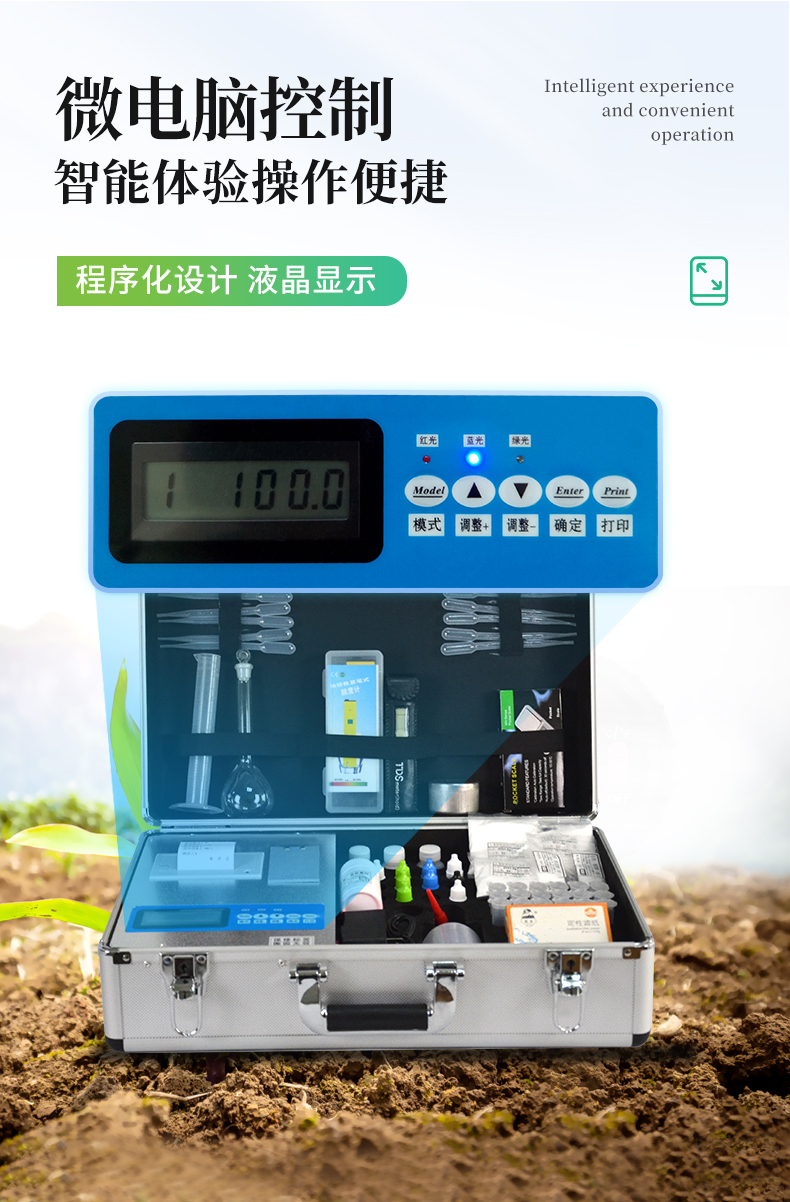 配套齊全:該儀器集藥、器、儀為一體,攜帶方便,相當于一個小型實驗室。適于農(nóng)業(yè)服務(wù)部門或農(nóng)資經(jīng)銷商、肥料廠商測土施肥和鑒別肥料真假。