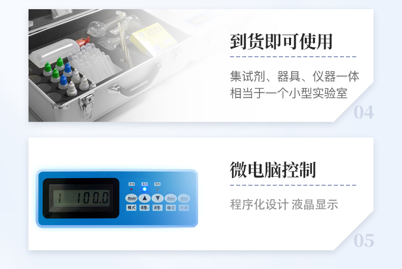 ★測試速度更快!無需空白對照和標準校準,省卻以往繁瑣的操作步驟,一鍵式操作,直接讀取數(shù)據(jù),配套成套附件及成品藥劑。