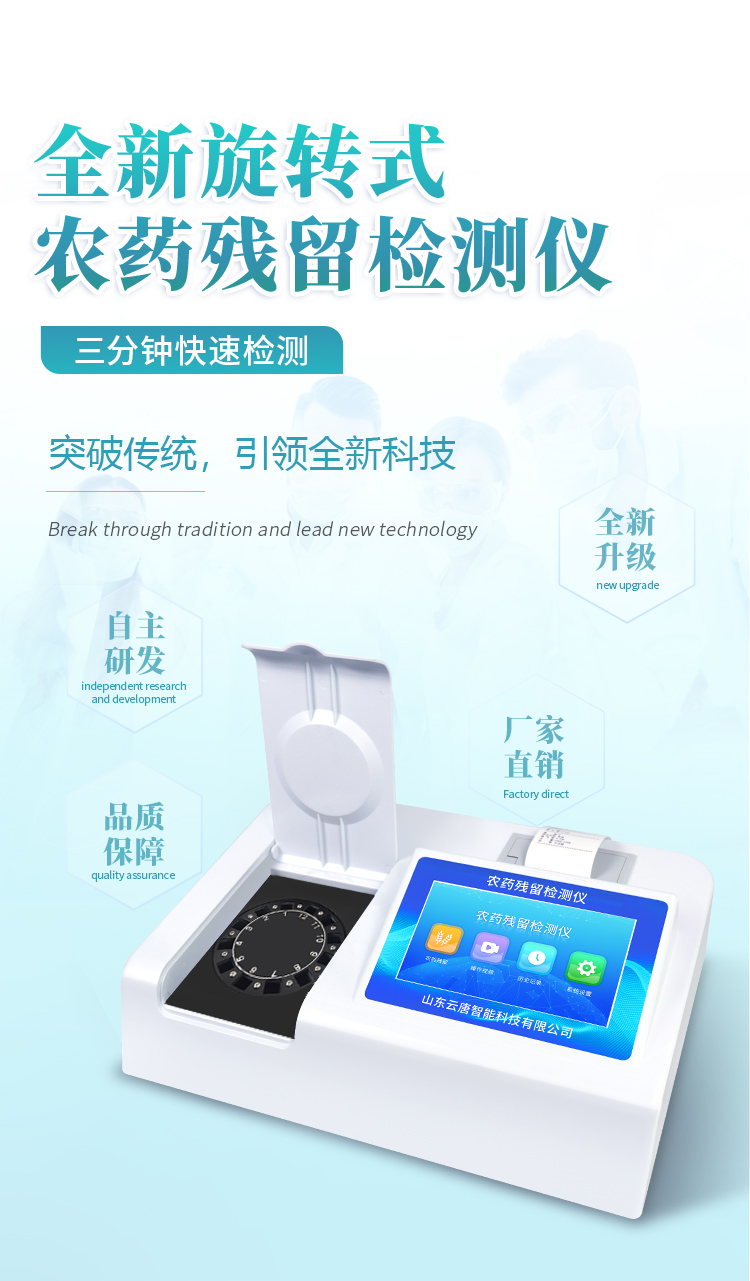 山東云唐智能科技有限公司生產(chǎn)的農(nóng)藥殘留檢測儀廣泛應(yīng)用于主要用于蔬菜、水果、茶葉、糧食、農(nóng)副產(chǎn)品等食品中農(nóng)藥殘留的快速檢測,依據(jù)國標GB/T5009.199-2003進行檢測,適用于果蔬茶生產(chǎn)基地以及農(nóng)貿(mào)批發(fā)銷售市場現(xiàn)場檢測,餐館、學(xué)校、食堂、家庭果蔬加工前的安全速測等。