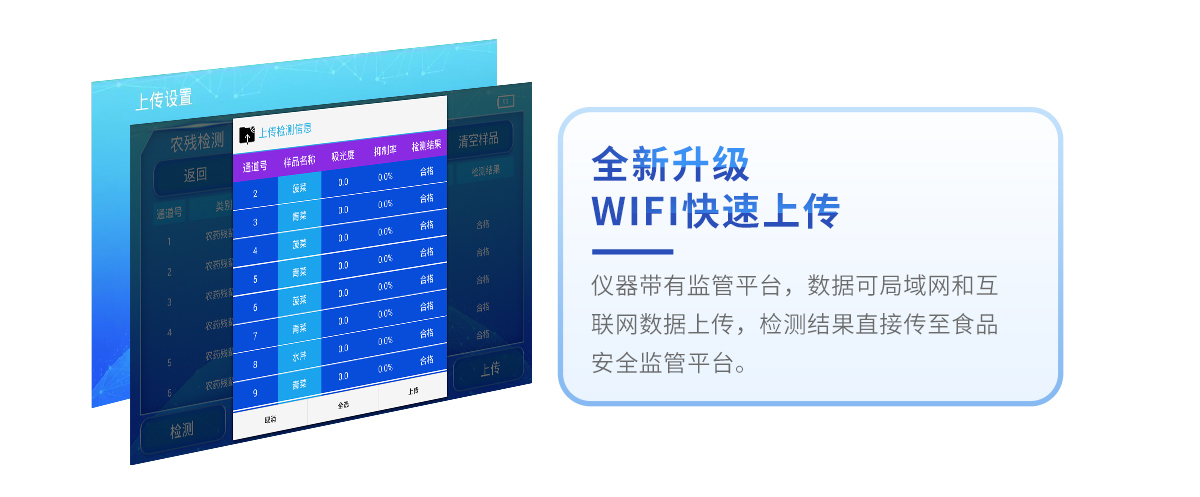②儀器具有無線上傳模塊,檢測結果可批量打印,批量上傳。