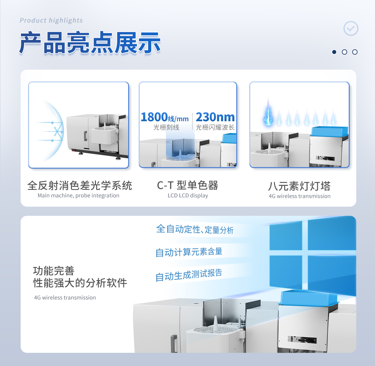 元素?zé)艉碗疅綦p重切換和背景扣除,具備氘燈與自吸收兩種背景校正模式,背景信號(hào) 1A 時(shí),扣背景能力 50 倍以上。 8、 外觀采用流線型鈑金工藝設(shè)計(jì),簡(jiǎn)約時(shí)尚,美觀大方 9、 功能完善,性能強(qiáng)大的分析軟件。 人性化的操作界面,讓您的操作易如反掌,可切換中英文 Windows 風(fēng)格軟件界面,可在 Windows XP, Windows 7 等操作系統(tǒng)下完美運(yùn)行,全自動(dòng)定性、定量分析,自動(dòng)計(jì)算元素含量,自動(dòng)生成測(cè)試報(bào)告。
