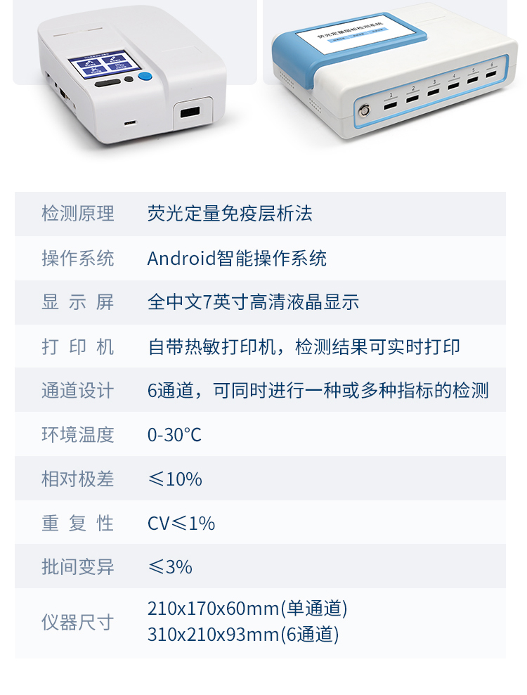 4、檢測原理:熒光定量免疫層析法;