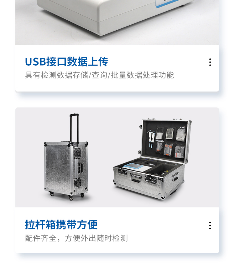 12、儀器配備全套前處理設(shè)備,拉桿箱設(shè)計,即可用于實驗室檢測可以外出攜帶檢測