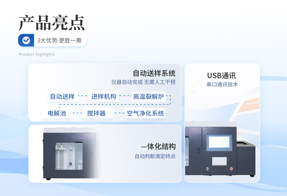| 1、 手自一體化自動送樣系統(tǒng),將自動送樣、進樣機構(gòu)、高溫裂解爐、電解池、攪拌器、空氣凈化系統(tǒng)等部件巧妙地結(jié)合在一起,使儀器結(jié)構(gòu)更加緊湊,更加合理、更加穩(wěn)定。可在線式插隊添加樣品,無需人工送樣,自動化程度高,若樣品少也可采用手動送樣方式。 | 2、采用—體化結(jié)構(gòu),自動判斷滴定終點,縮短了實驗時間。所有關(guān)鍵部件均采用了設(shè)計理念及進行了嚴(yán)格的控制,確保儀器能長時間穩(wěn)定運行。 | 3、采用特別的數(shù)據(jù)采集網(wǎng)絡(luò)及多級校正技術(shù),確保高、中、低硫含量測試結(jié)果的準(zhǔn)確性。 | 4、送樣機構(gòu)采用電子電解液分子濃度采集電路,可靠性高,不會產(chǎn)生過電解現(xiàn)象。 | 5、串口通訊技術(shù),可采用usb通訊,兼容性好,具有廣泛的適用性。 | 6、自由設(shè)置送樣時間及預(yù)置溫度,采用進口霍爾元件控制送樣位置。 | 7、采用剛玉瓷舟,減少卡樣的可能。一次可放1-24個樣由程序控制實現(xiàn)自動升溫、控溫、送樣、測定,結(jié)果自動存盤、自動打印,并可中途在線式插隊添加試樣,大大地提高了工作效率,真正實現(xiàn)無人值守; | 8、采用庫侖滴定法進行測定,測定時間可根據(jù)不同試樣自動判斷,速度優(yōu)于艾士卡重量分析法和高溫燃燒中和法; |