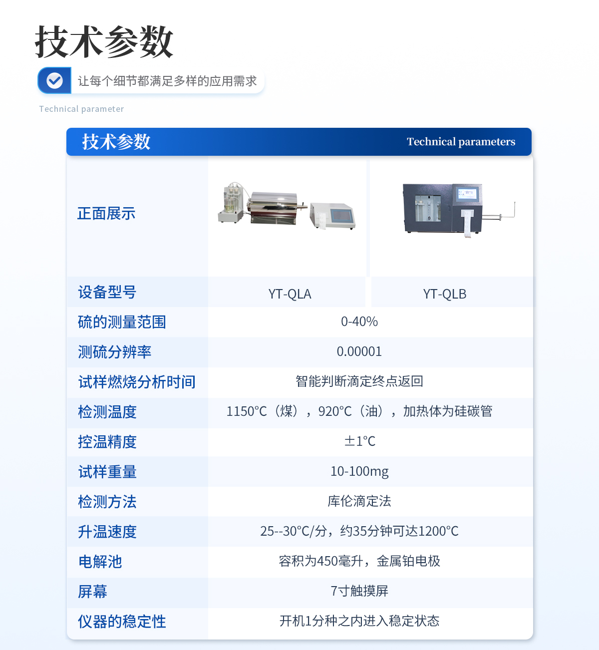 | 測硫范圍:0.01~100% | 測試方法:庫侖滴定法 | 測試分辨率:0.001% | 測試溫度:1150℃ | 升溫時間:≤25分鐘 | 分析時間:4min左右 | 測硫精度:符合國標(biāo) | 樣品數(shù)量:24個 | 工作爐溫:1150℃(煤、焦炭)、900℃(油) | 控溫精度:±2℃ | 試樣質(zhì)量:50±5mg(煤、焦炭)、100±10mg(石油產(chǎn)品) | 送樣方式:自動送樣、棄樣 | 試樣數(shù)量:1-24個/批,試驗過程可添加/替換試樣 | 準(zhǔn)確度:符合GB/T214-2007《煤中全硫的測定方法》 | 工作電源:AC220V±22V/50Hz 功率:≤2.5kW |