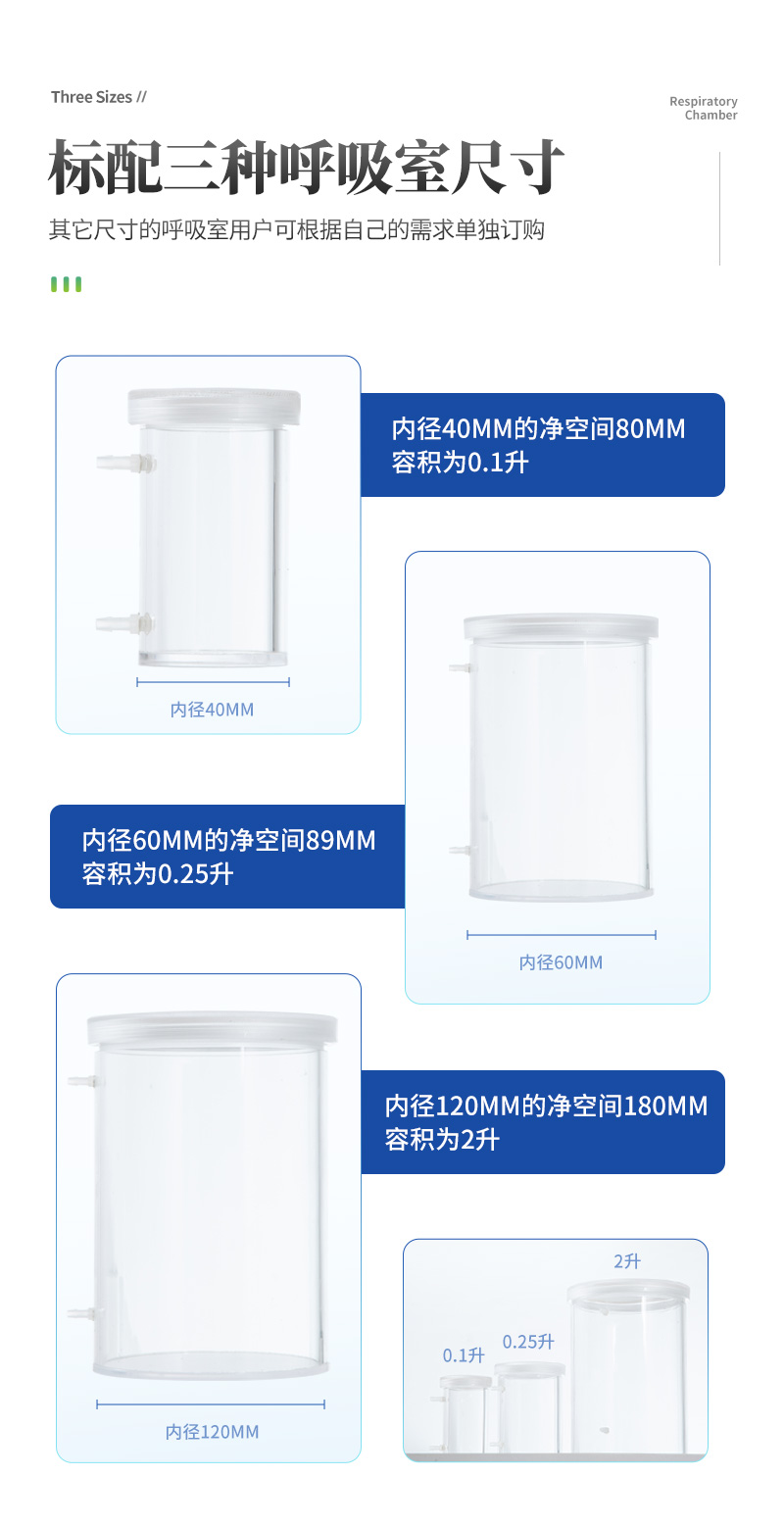 | 測(cè)量范圍:0-100% 分辨率:0.1% 精度:±0.2%F.S | 電 源:AC220V±10% | 預(yù)熱時(shí)間:30分鐘 | 標(biāo)配三種呼吸室尺寸: | 1、內(nèi)徑40mm的凈空間80mm 容積為0.1升 | 2、內(nèi)徑60mm的凈空間89mm 容積為0.25升 | 3、內(nèi)徑120mm的凈空間180mm 容積為2升 | 其它尺寸的呼吸室用戶可根據(jù)自己的需求單獨(dú)訂購(gòu) |