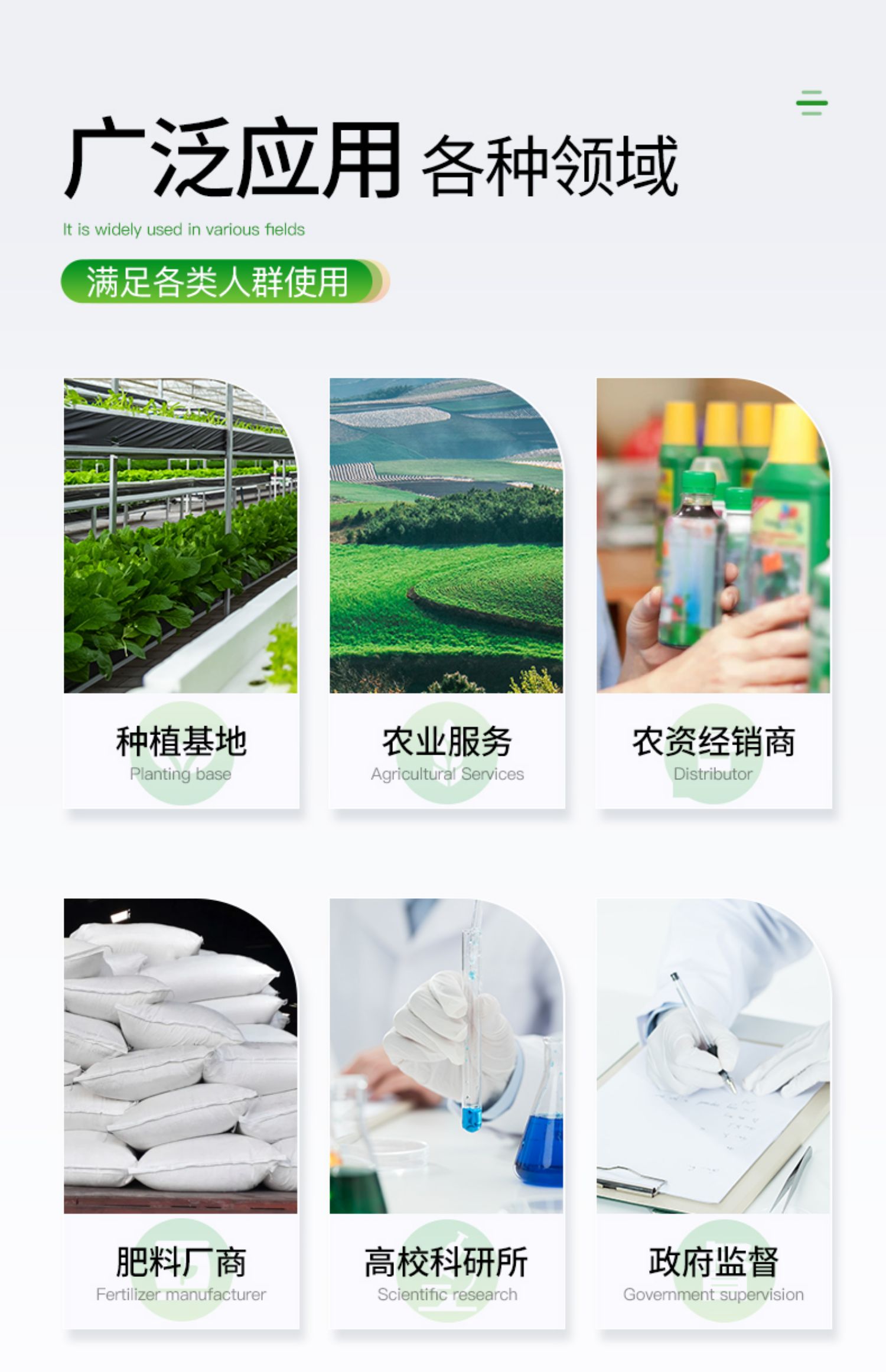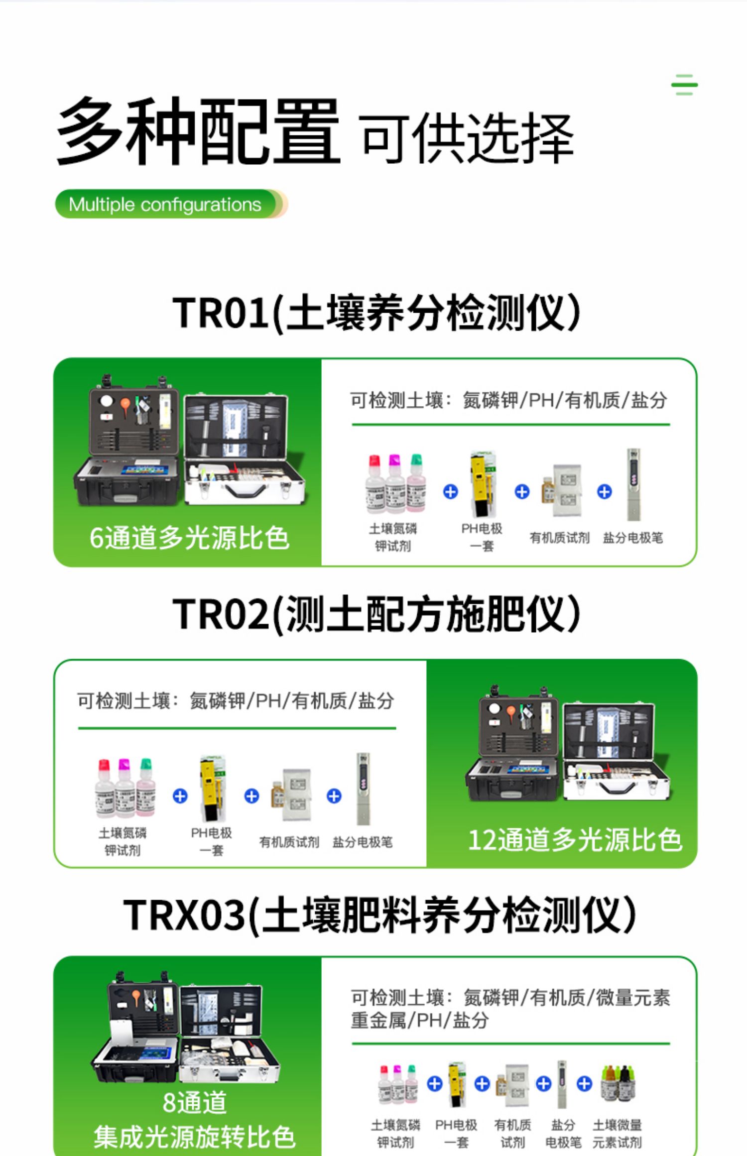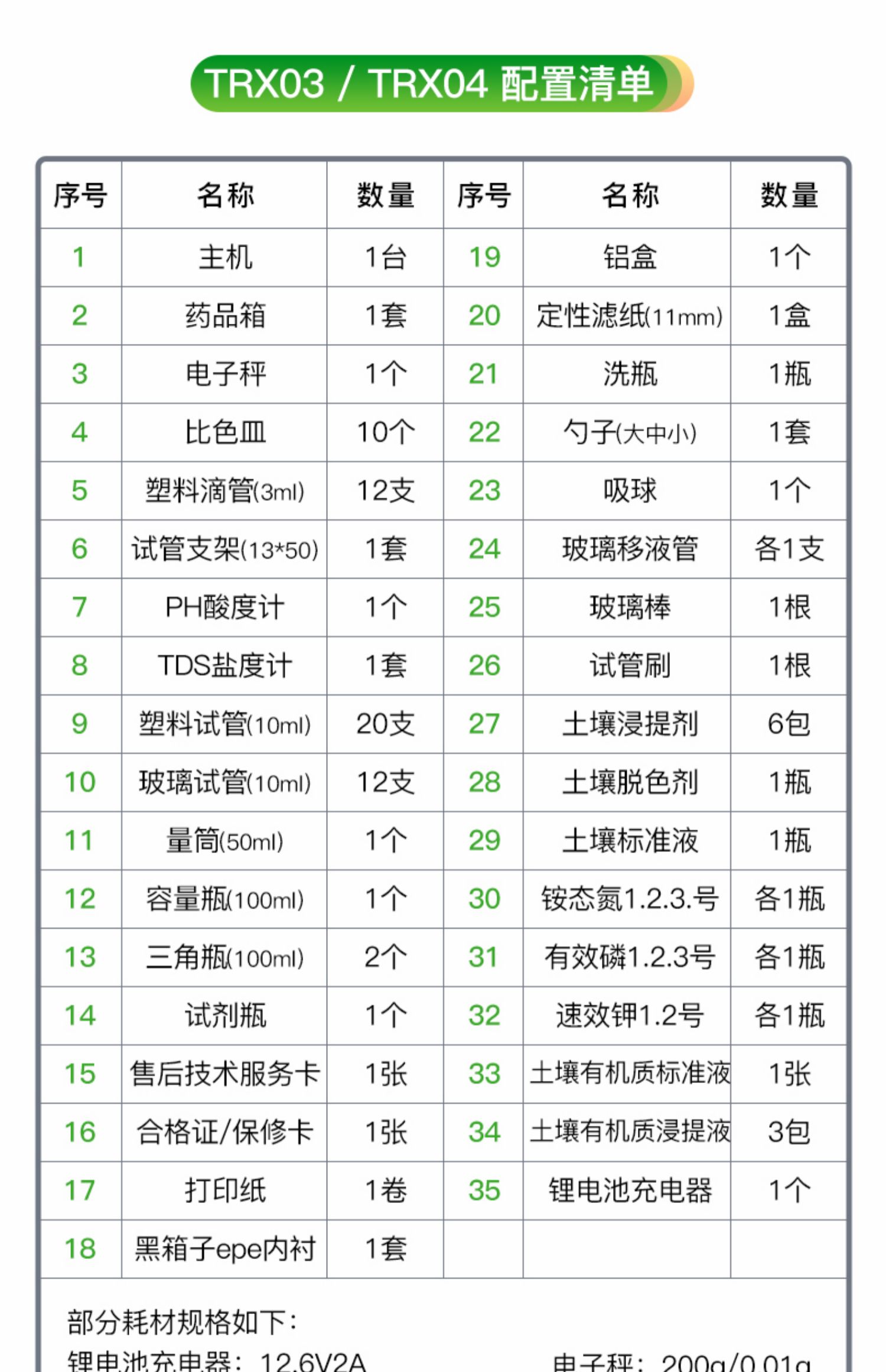 | 功能全:測試項目國內(nèi)外*全(各類藥劑均可選購)。 | 配套齊全:該儀器集藥、器、儀為一體,攜帶方便,相當于一個小型實驗室。適于農(nóng)業(yè)服務部門或農(nóng)資經(jīng)銷商、肥料廠商、莊家醫(yī)院進行農(nóng)化服務。 | 操作簡便、速度快捷,成品藥劑開瓶即用,無須配置。 |