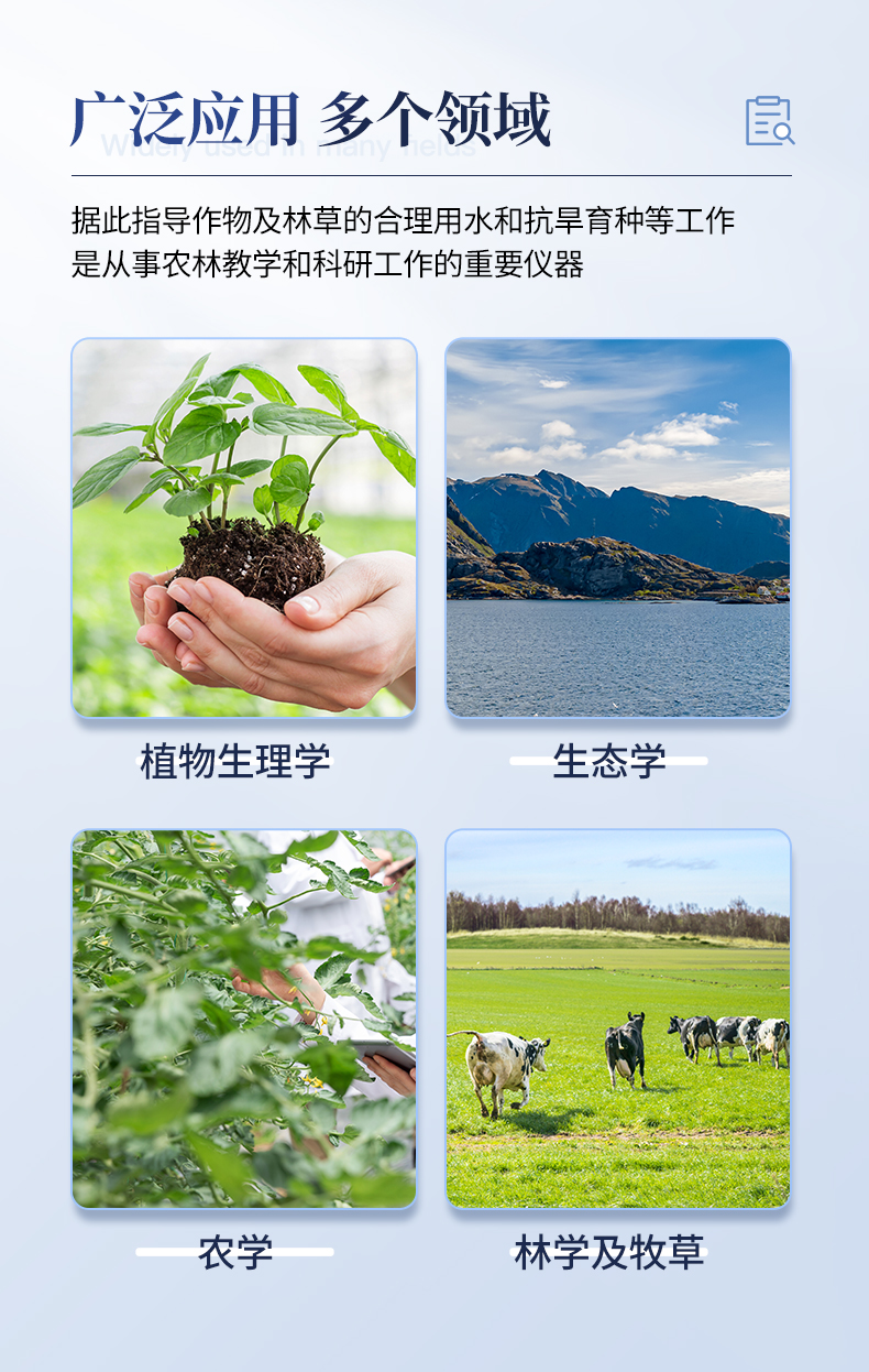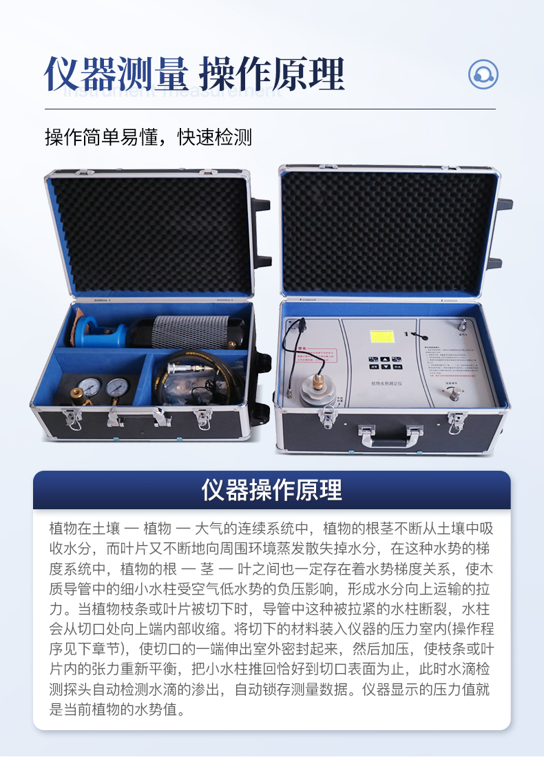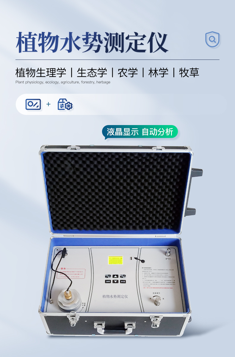 植物水勢儀是用于測定植物水份狀況和植物是否需要灌溉分析的一種儀器。可以利用此儀器研究植物的水分關(guān)系和植物與環(huán)境的關(guān)系。適用于植物生理學、生態(tài)學、農(nóng)學、林學及牧草等的研究。據(jù)此指導作物及林草的合理用水和抗旱育種等工作,是從事農(nóng)林教學和科研工作的重要儀器之一。它操作簡便,檢測快速,同時適用于室內(nèi)和室外及野外測量。