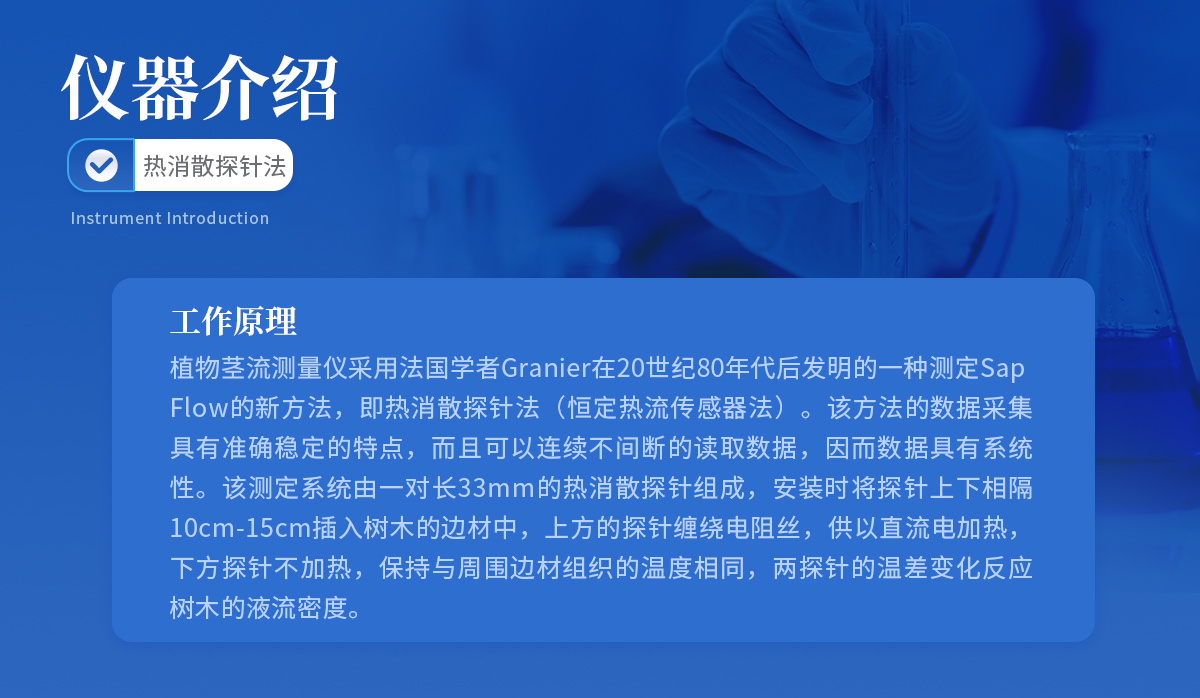 簡介:儀器介紹:植物莖流測量儀采用熱消散探針法測量樹干瞬時莖流密度,可以長期連續(xù)觀測樹木的液流,有利于研究樹木和大氣之間的水分交換規(guī)律,并以此為觀測手段,長期監(jiān)測森林生態(tài)系統(tǒng)對環(huán)境變化的影響。對于造林綠化、森林管理和林業(yè)管理等具有重要的理論指導意義和應用價值。工作原理 :植物莖流測量儀采用法國學者Granier在